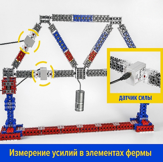 Демонстрационный набор позволяет на основе простейших моделей изучить зависимость напряжений от деформации, возникающих в элементах ферм, балок и кронштейнов.
