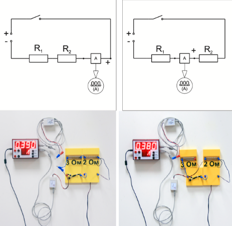 Демонстрации выполняются с использованием датчиков напряжения и тока с выведением результатов.