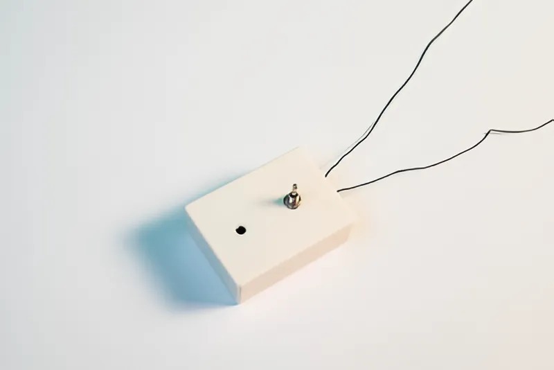 Прибор представляет собой источник звука (зуммер), который включается и выключается тумблером. К прибору прикреплена нить для его вращения.