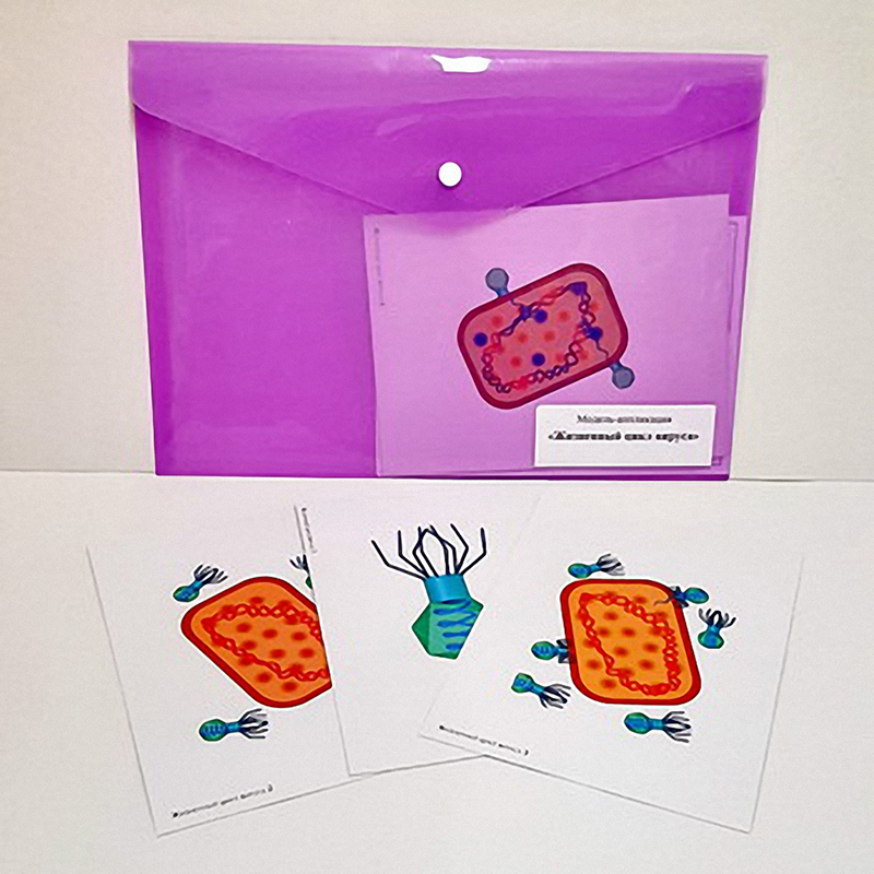 Модель-аппликация предназначена для использования в общеобразовательных учреждениях в курсе общей биологии в качестве демонстрационной модели при изучении темы «Жизненный цикл вируса» на занятиях по основам генетики и цитологии.