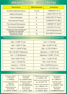 Таблица "Физические константы. Переходные множители. Основные физические постоянные" (100х140 сантиметров, винил)