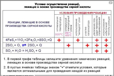 13. Условия осуществления реакций, лежащих в основе производства серной кислоты