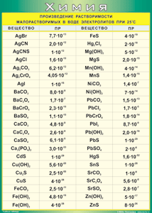 Таблица "Произведение растворимости малорастворимых в воде электролитов при 25°С" (100х140 сантиметров, винил) - fgospostavki.ru - Челябинск