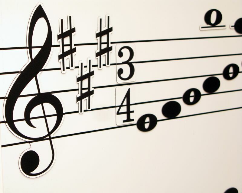 Настенная магнитно-маркерная доска с нотным станом и знаками музыкальной нотации. Вариант 1