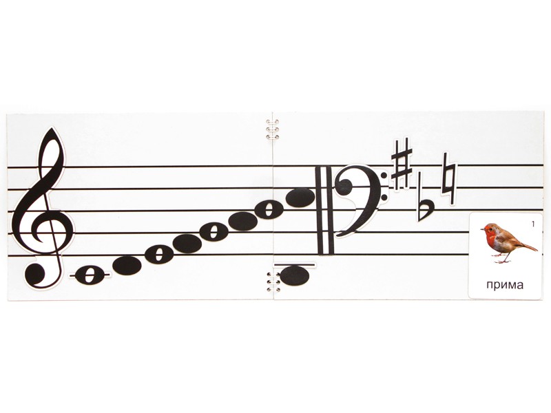 Изделие состоит из двух мягких магнитно-маркерных полей формата А4, соединенных друг с другом по короткой стороне и 125-ти магнитных карточек с различными знаками музыкальной нотации. Обратная сторона полей, хоть и не магнитная, но тоже "рабочая": на одной половине изображены клавиши пианино, на другой - цветная музыкальная гамма.