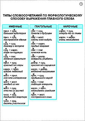 1. Типы словосочетаний по морфологическому способу выражения главного слова