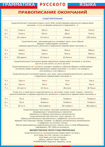 Таблица "Грамматика русского языка. Правописание окончаний имен существительных" (100х140 сантиметров, винил) - fgospostavki.ru - Челябинск