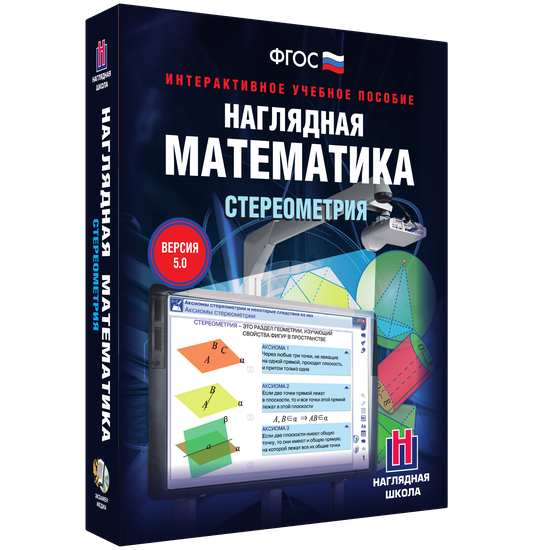 Интерактивное учебное пособие разработано с учётом ФГОС СОО и примерной программы по математике среднего общего образования. Материал интерактивного учебного пособия «Наглядная математика. Стереометрия» содержит все темы учебных курсов по геометрии 10-11 классов.