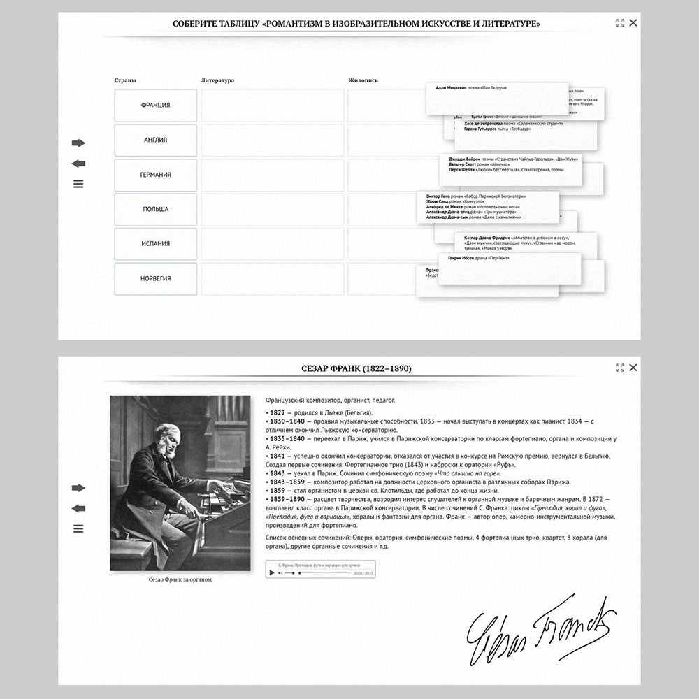 - обучающий материал (тексты, ноты, иллюстрации, аудио- и видеофрагменты);