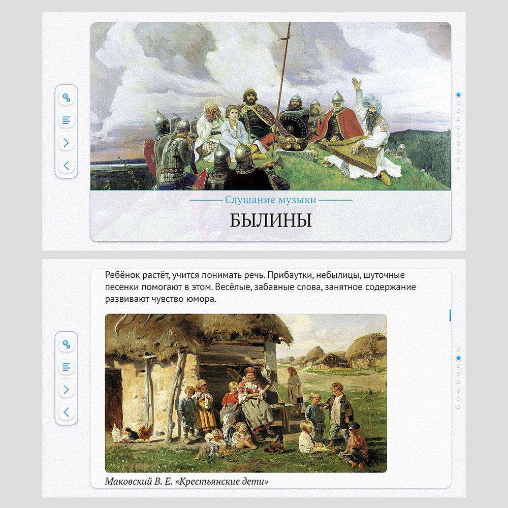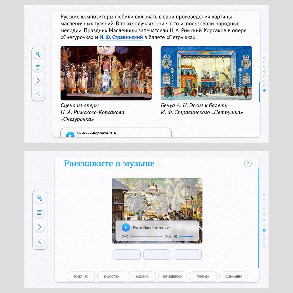 • обучающий материал (тексты, ноты, иллюстрации, аудио- и видеофрагменты);