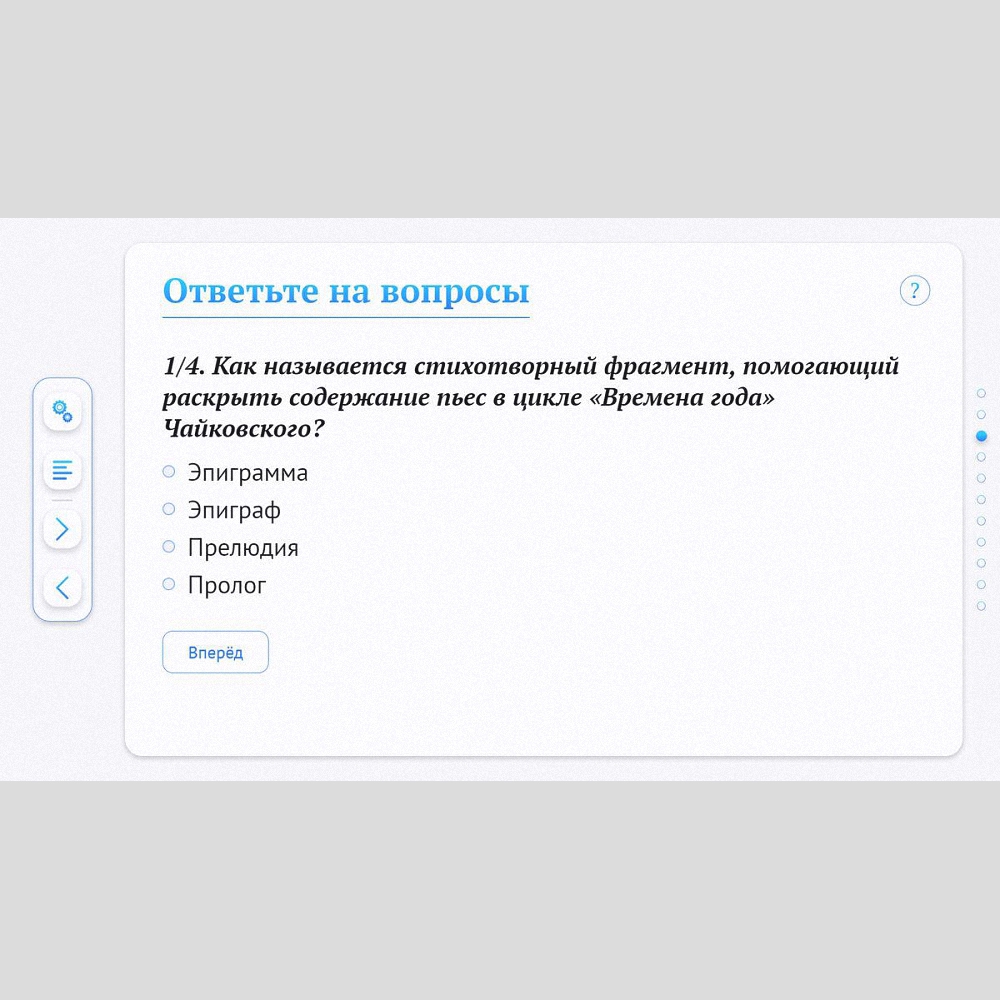 • учебный материал (тексты, ноты, иллюстрации, словарь аудио- и видеофрагменты);