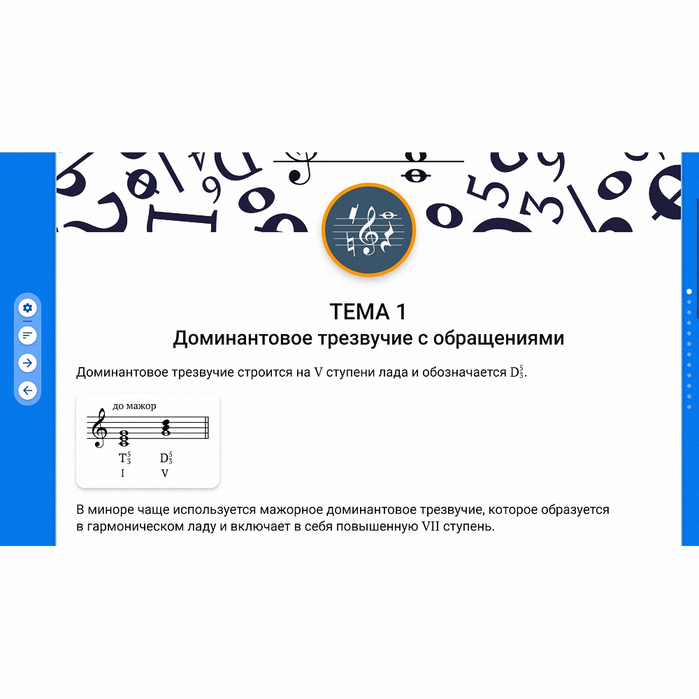 - обучающий материал (тексты, ноты, иллюстрации, аудио- и видеофрагменты);