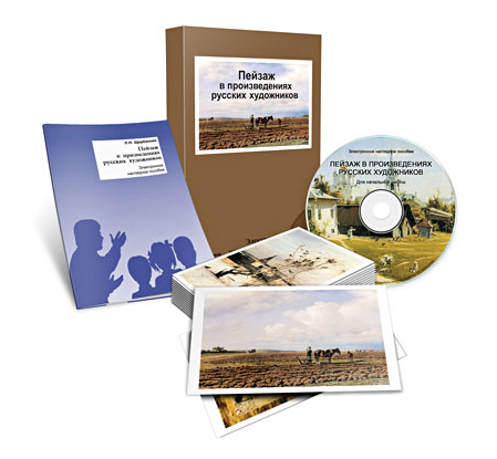 Печатные элементы пособия представлены раздаточными карточками, включающими репродукции картин русских художников; методическим пособием, содержащим подробные рекомендации по использованию всех компонентов комплекта.