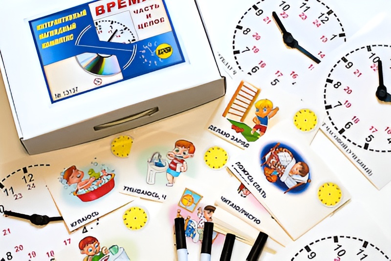 Интерактивное приложение содержит сведения о видах часов, иллюстрации, демонстрационный материал и задания, позволяющие в удобной форме познакомить детей со временем и научить его определять.