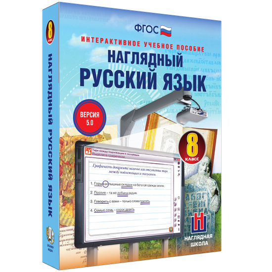 Пособие можно использовать с любыми учебниками, входящими в Федеральный перечень. Интерактивное учебное пособие «Наглядный русский язык. 8 класс» содержит все темы годового учебного курса по русскому языку. В каждую тему включены тестовые контрольные задания, интерактивные упражнения на усвоение теоретического материала и на отработку практических навыков.