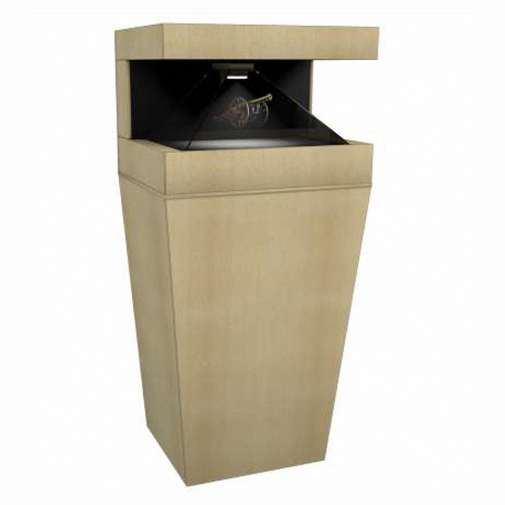 Принцип работы голографической пирамиды, расположенной на тумбе, заключается в транслировании с помощью высококонтрастной матрицы на стеклянной панели устройства зацикленного видеоряда в трех плоскостях.