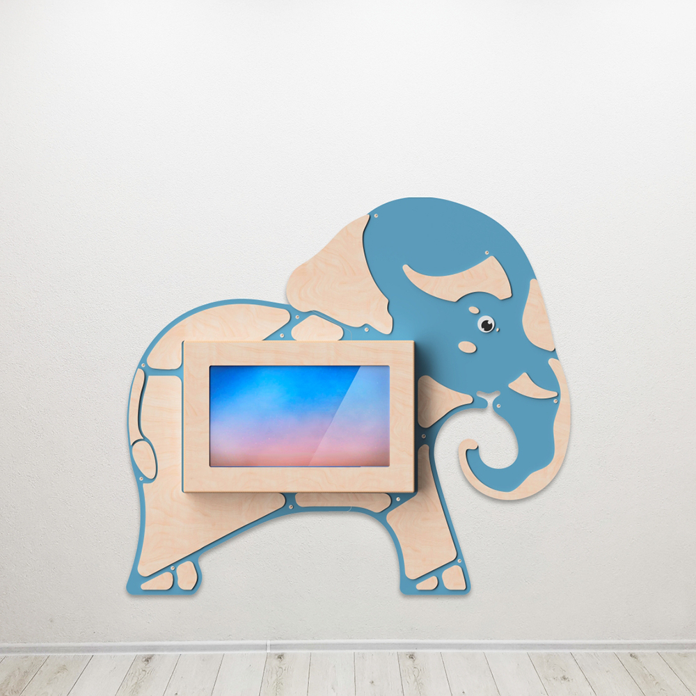 Настенная панель «Слон» со встроенной интерактивной сенсорной панелью 32 дюйма. Это одновременно декоративное оформление стен и развивающая игрушка, ведь на панели установлен пакет игрового и обучающего ПО.
