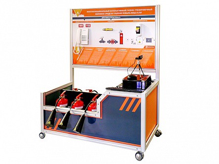 Огнетушители: ОП (АВСЕ), ОП (Д), ОВП, ОУ, ОХ, ОВЭ, вместимостью 3-4 л (насадка каждого огнетушителя снабжена датчиком пространственного позиционирования – расстояние до "очага возгорания" (сонар), маркером попадания (лазер) и индикатором уровня заряда батареи, установленной на стойке оборудования). Каждый из шести представленных имитаторов огнетушителей имеет те же органы управления, что и обычный огнетушитель: