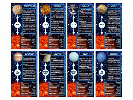 - информационные стенды, представляющие собой панель, на которой отображены основные параметры соответствующей планеты;