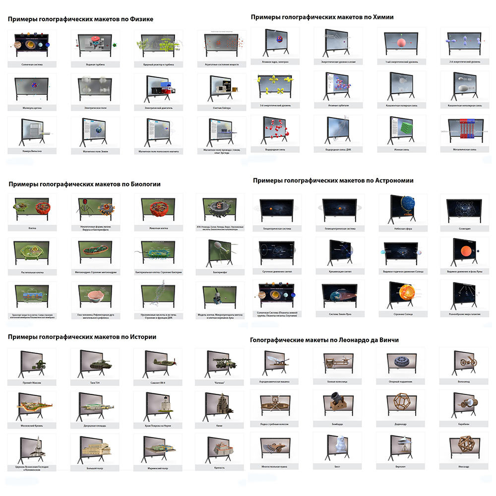 • обучающийся может разбирать голографический макет на составные части,