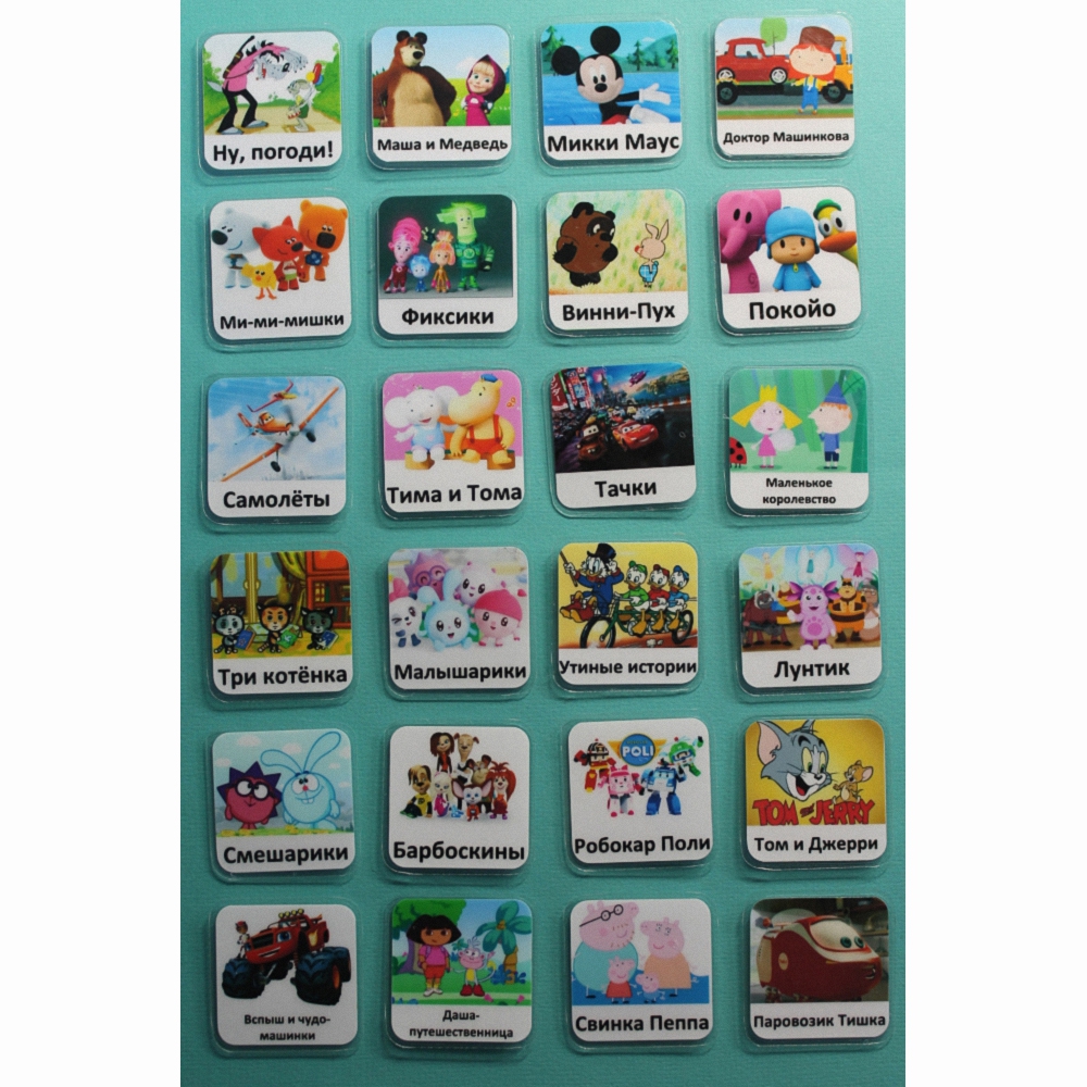 Карточки PECS – система альтернативной коммуникации для детей, у которых трудности с речью и общением. Карточки "Мультфильмы" помогут вашему ребенку в повседневной жизни и в школе, уменьшат неприемлемое поведение, способствуют улучшению взаимопонимания. Они пригодны для использования в коммуникативных книгах и визуальных расписаниях.