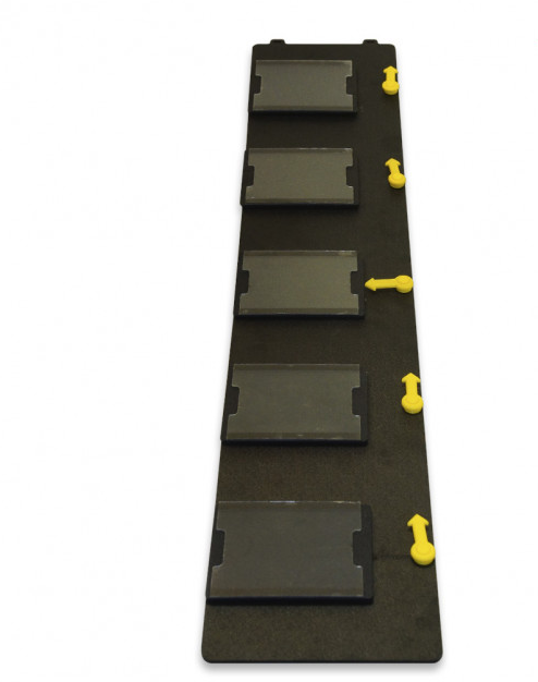 В комплекте 5 горизонтальных ячеек под карточки, рядом расположены стрелки-указатели. Для каждого нового занятия необходимо перевести стрелку на указанную картинку.