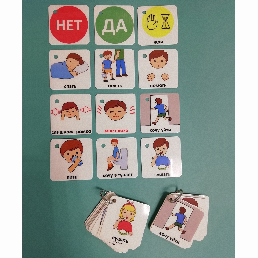 Карточки помогают овладеть навыками общения не говорящему ребенку. Общение для ребенка с окружающими людьми становится более доступным, способствуя адаптации и социализации его в обществе. Помогают быстро приобрести базовые функциональные навыки коммуникации, проявлять инициативу к диалогу и спонтанно произносить слова.