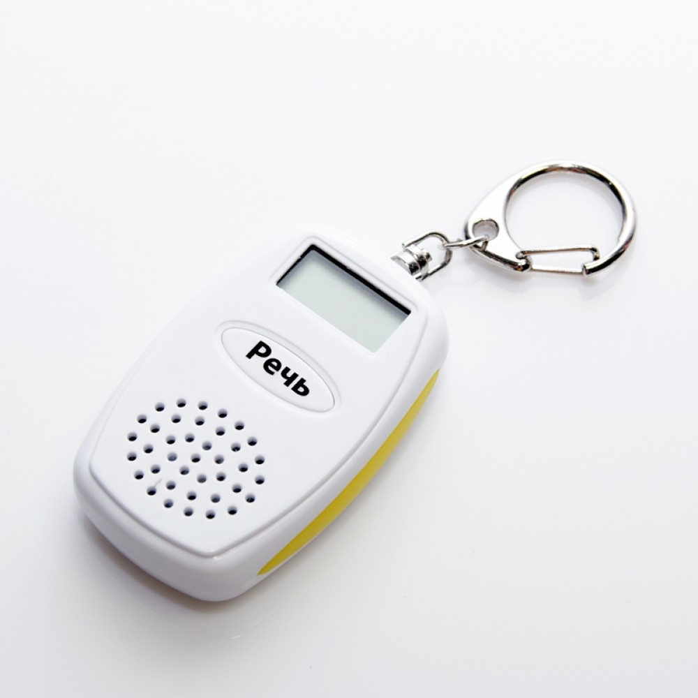 Удобный брелок на одежду/сумку или под ключи с речевым выходом предназначен для незрячих и слабовидящих людей. С его помощью можно узнать текущее время и температуру воздуха. Также его можно использовать в качестве будильника.