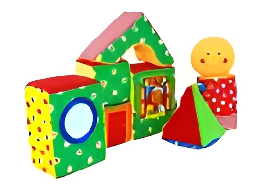 Мягкий оригинальный конструктор способствует развитию сенсорных способностей (восприятие формы предметов) и мелкой моторики рук у детей в возрасте от 5-6 месяцев до 1 года.