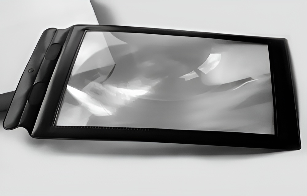 Линза Френеля с размерами в виниловой рамке удобна для просмотра страниц формата А4.