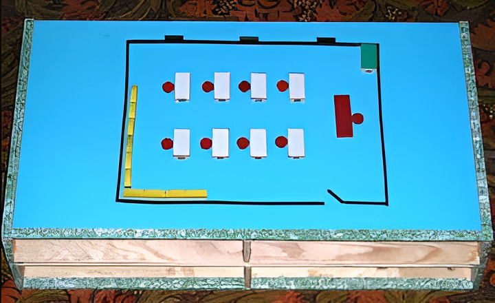 Рекомендуется для детей дошкольного и младшего школьного возраста, а также для лиц, потерявших зрение в среднем и пожилом возрасте. Он предназначен для построения на плоскости различных планов местности, маршрутов движения, планов зданий и часто посещаемых помещений административных зданий, а также различных элементарных схем, графиков, геометрических фигур и т.д. Каждый элемент прибора может выполнять различные функции. Например, большой белый прямоугольник может быть представлен в качестве этажа дома или в качестве стола в комнате, домик может быть представлен в качестве сельского или дачного домика или в качестве торгового павильона. Выбор функций элементов прибора зависит от поставленной пользователем цели. Все элементы прибора - магнитные, поэтому они достаточно хорошо держатся на поле построения.