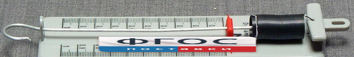 Прибор представляет собой пружинный динамометр, на пластмассовом корпусе, с нанесенной на него двойной шкалой измерений (позволяет измерять нагрузку в ньютонах). На верхней стороне динамометра находится кольцо для удержания прибора, а на нижней – металлический крючок для подвешивания грузов.