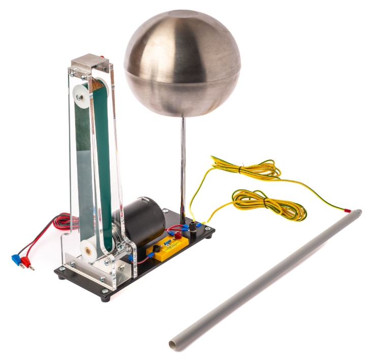 Набор позволяет познакомиться с переносом зарядов и созданием высокого напряжения в опытах по электростатике, которые иллюстрирует генератор Ван-де-Граафа.