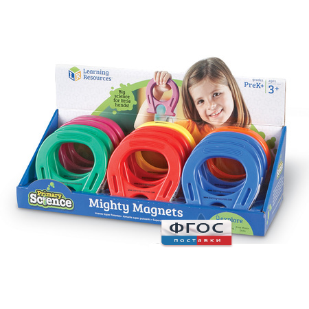Набор состоит из 12-ти подковообразных магнитов размером: 12 х 11,5 х 2 см., в 6-ти ярких цветах (+ картонная подставка под них).