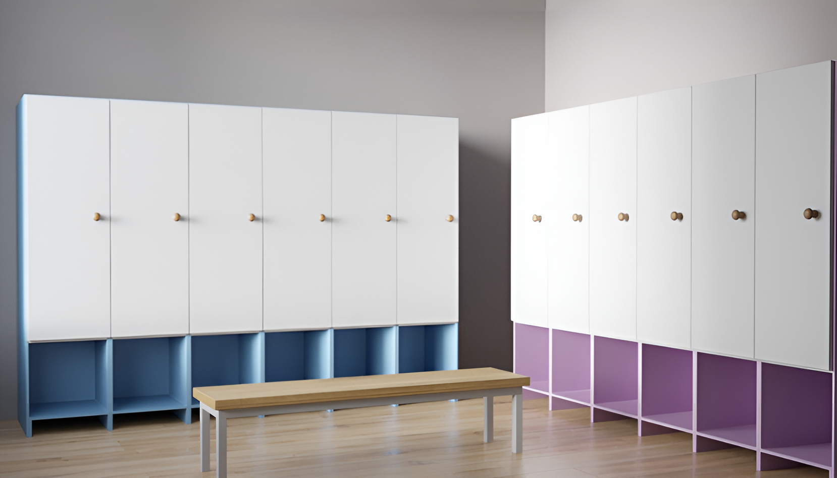 Детский гардероб — нежные стеллажи для мальчиков и девочек разных возрастов, которые выполнены из качественных, а главное безопасных материалов. Оснащены элементами в виде крючков и полок для складывания одежды и обуви. Дети могут самостоятельно, без помощи взрослых, складывать свои вещи в шкафчик, развивая самостоятельность. Данный гардероб выступает как специализированная мебель для детей, которая может стать прекрасным дополнением к полноценному гардеробу в интерьере детского центра, детского сада, а также подойдет для специальных школ и интернатов.