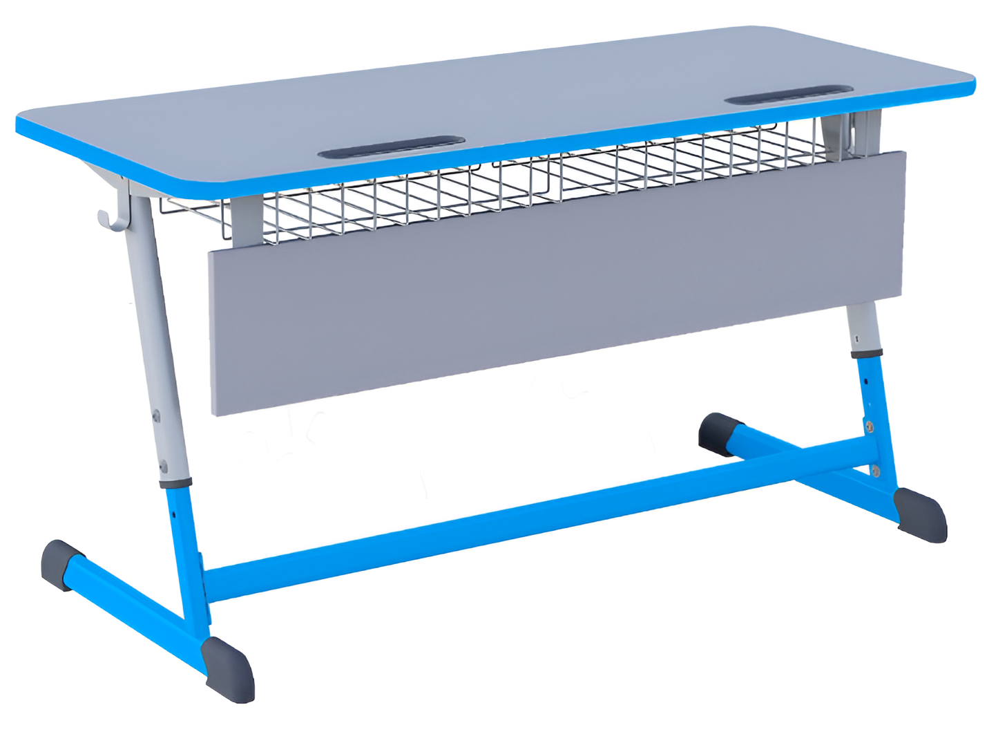 Парта NOMAD двухместная регулируемая по высоте имеет металлическое основание, столешницу ЛДСП с антивандальной полиуретановой кромкой, встроенные пластиковые пеналы, сетку для принадлежностей, крючки для рюкзаков, царгу из ЛДСП.