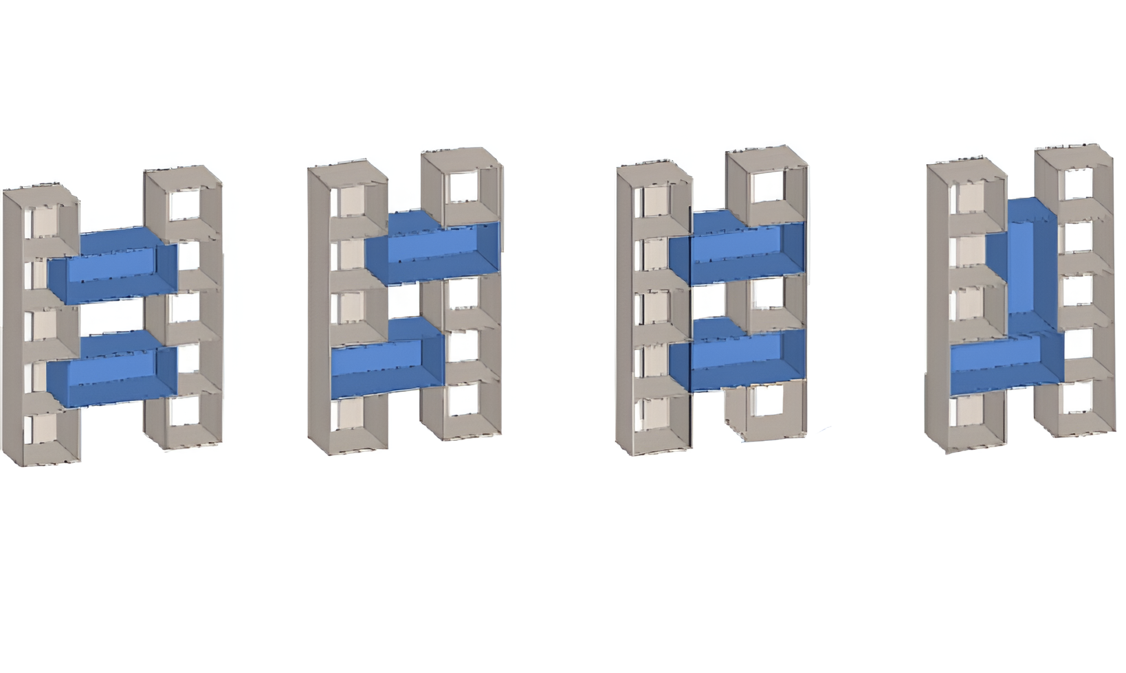 Стеллаж Transform состоящий из двух шкафов и двух стеллажей, которые комбинируются между собой. Возможность выбора цвета вставок.