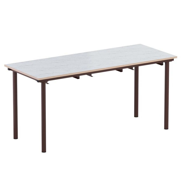Стол изготавливается на металлическом каркасе круглого сечения, покрытого стойкой к химическим и механическим воздействиям полимерно-порошковой краской, на свободных концах труб установлены заглушки из ударопрочных полимеров.