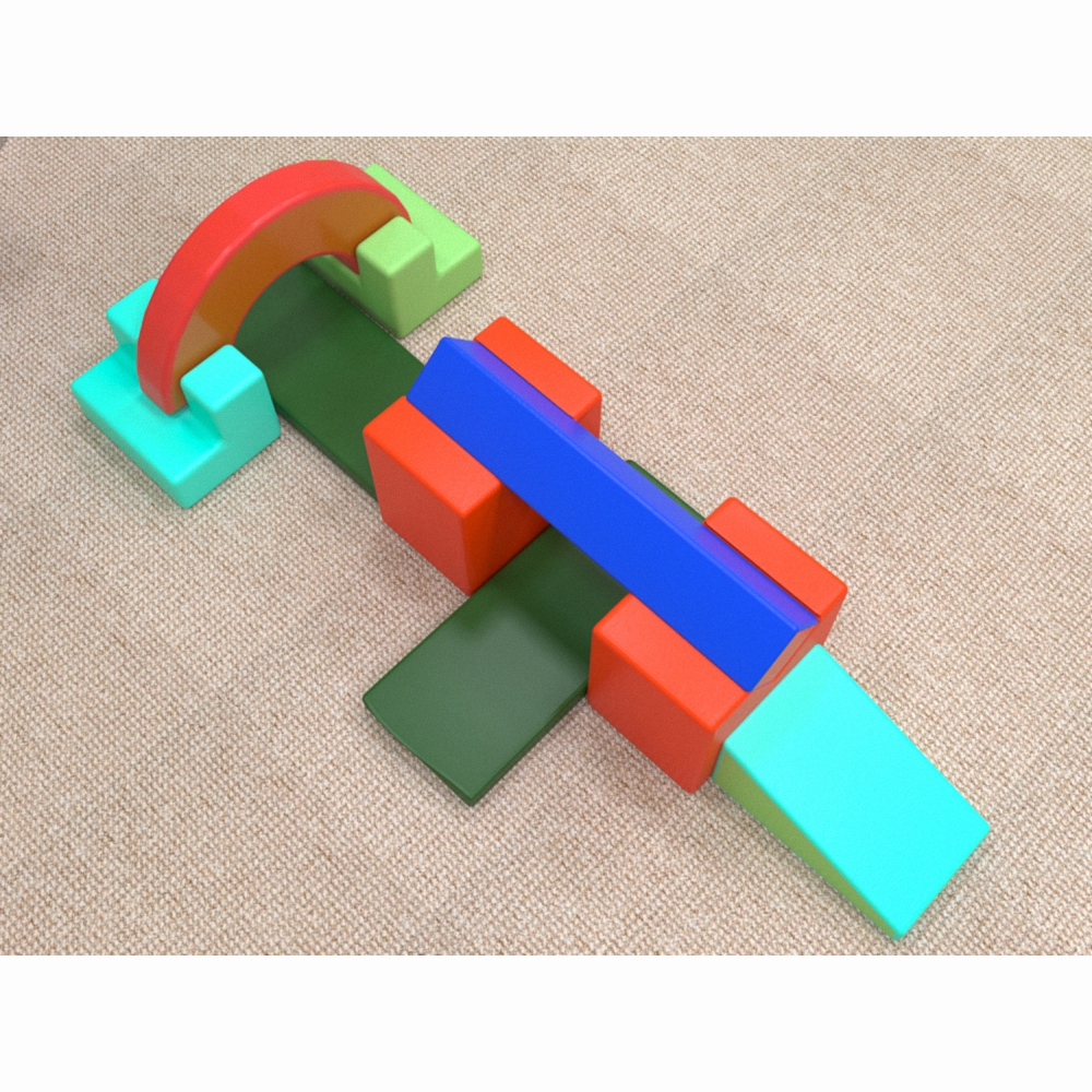 Представленный набор мягких модулей используется для проведения детских спортивных мероприятий, эстафет, тренировок, занятий физической культурой в лёгкой игровой форме (рекомендуемый возраст использования – от 4 до 13 лет). Представляет из себя набор разноцветных модулей различной формы (горка, полукруг, брус, подставки сложной формы, маты прямоугольные), которые составляются нужным образом - получается единая «полоса препятствий». Плюсом является бескаркасная конструкция модуля (это помогает избежать травмирования ребёнка), как и мягкий, упругий наполнитель, который также устойчив к разрывам и повреждениям. Покрытие легко моется.