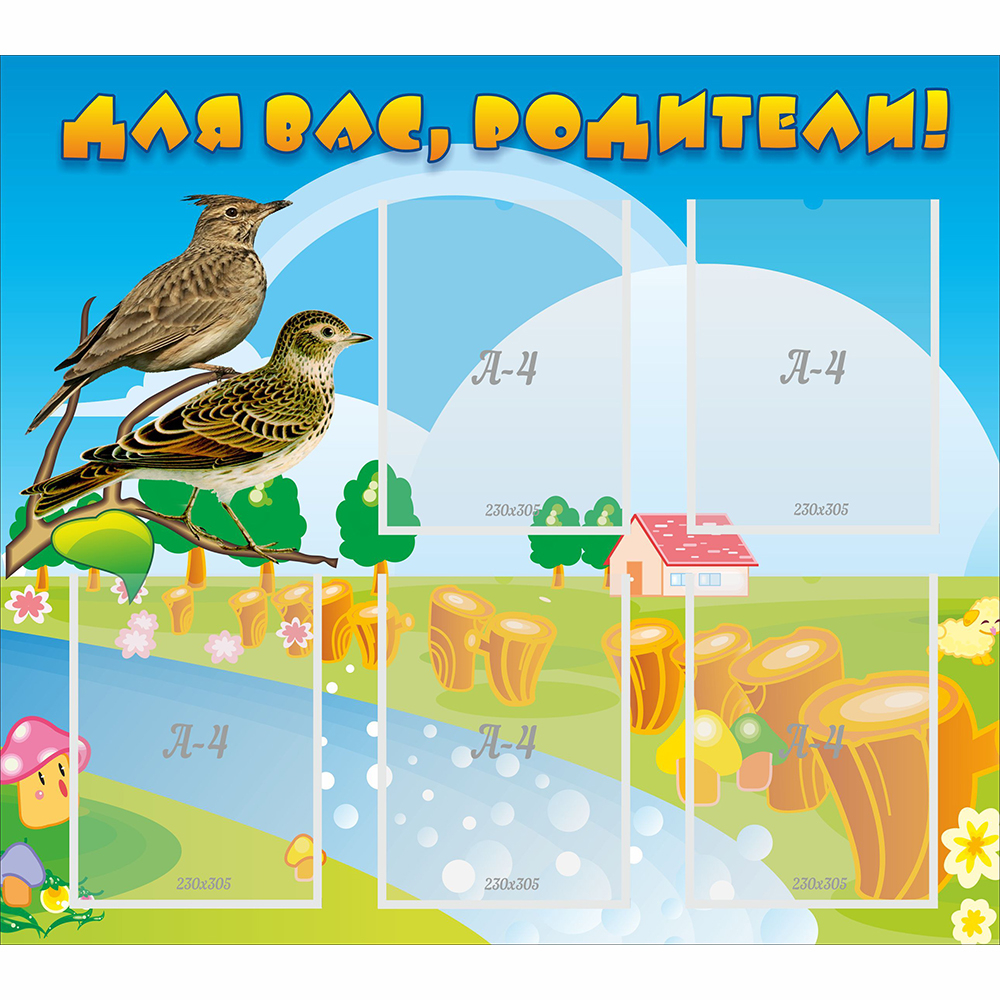 Стенд для родителей не должен отличать по своему стилевому и цветовому решению от других стендов. Потому что в детском саду все должно быть выдержано в общем детском стиле, с яркими красками, интересными рисунками, и привлекательными картинками. И информационный стенд не должен быть исключением. Представленный сделан по всем стандартам качества, из прочного материала, который должно прослужит и будет радовать глаза не только сотрудников сада, но и родителей детей. Практичные карманы для информации позволяют помещать любые объявления в удобное время. Это отличное организационное решение для любого сада.
