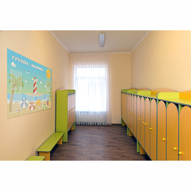 Этот стенд подарит взрослым и детям яркое летнее настроение. В его дизайне используются морские мотивы, а главным элементом является маяк. На рисунке дети увидят берег океана, растущие пальмы, разноцветные пляжные зонтики. В небе малышей будет встречать доброе солнце и белые чайки.