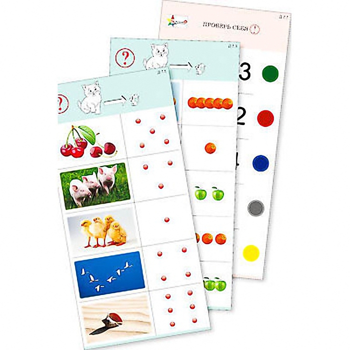 Пособие состоит из 10 полноцветных, напечатанных на картоне и ламинированных пленкой карточек. Является частью игрового набора "Обучающий калейдоскоп для дошкольного образования".