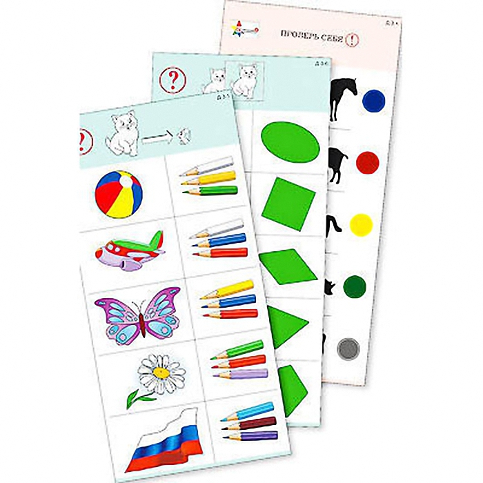 Пособие состоит из 10 полноцветных, напечатанных на картоне и ламинированных пленкой карточек. Является частью игрового набора "Обучающий калейдоскоп для дошкольного образования".