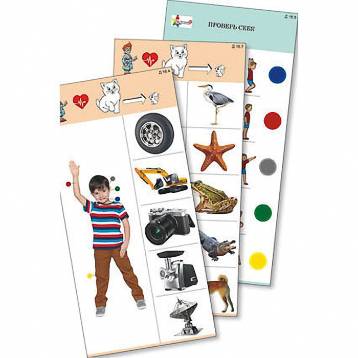 Пособие состоит из 10 полноцветных, напечатанных на картоне и ламинированных пленкой карточек. Является частью игрового набора "Обучающий калейдоскоп для дошкольного образования".