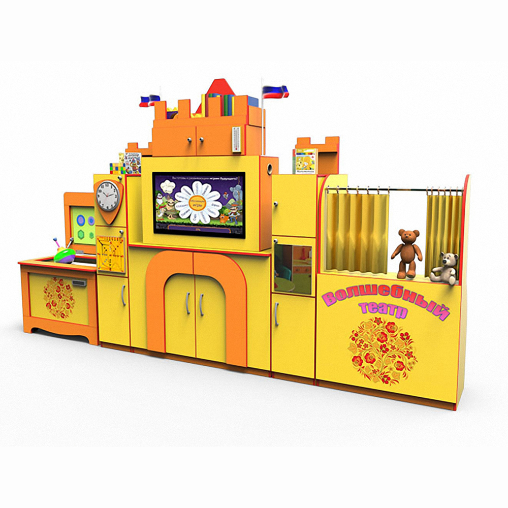 Огромный комплекс выполнен из ЛДСП, сертифицированного и допущенного для изготовления детских товаров. В комплектацию входит сенсорный экран диагональю 32" дюйма и разрешением 1920х1080 px, современный персональный компьютер Intel Core i3 с видеокартой Intel HD Graphics, клавиатура, мышь, кабели HDMI и Usb, сетевой фильтр на 4 розетки, акустическая система и зеркало.