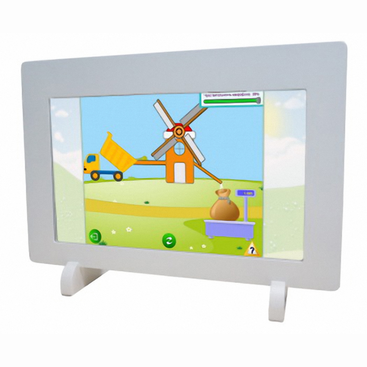 Это уникальное оборудование, в отличие от других имеющихся на рынке моделей, имеет антивандальный монитор (диагональю 24 дюйма) с сенсорной поверхностью, которая дает возможность ребенку самому производить действия с помощью прикосновений к экрану, уроки при этом получаются гораздо интереснее и ярче, а значит, ученики лучше воспринимают информацию.