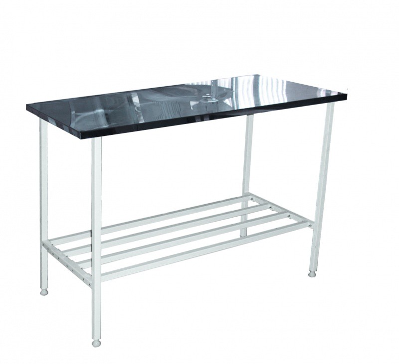 Главная Каталог Оборудование для медицинского кабинета Стол на металлическом каркасе с продольными стяжками 900*1200*750(900)