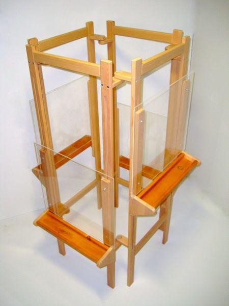 Прозрачный мольберт, состоящий из четырех частей, выполнен из небьющегося стекла и идеально подходит для групповых занятий в детских садах и центрах раннего развития. Рисунок, выполненный на мольберте, можно сохранить на бумаге - приложите к свежему рисунку лист ватмана. Если же рисунок немного подсох, увлажните его, слегка побрызгав водой, а потом приложите бумагу.