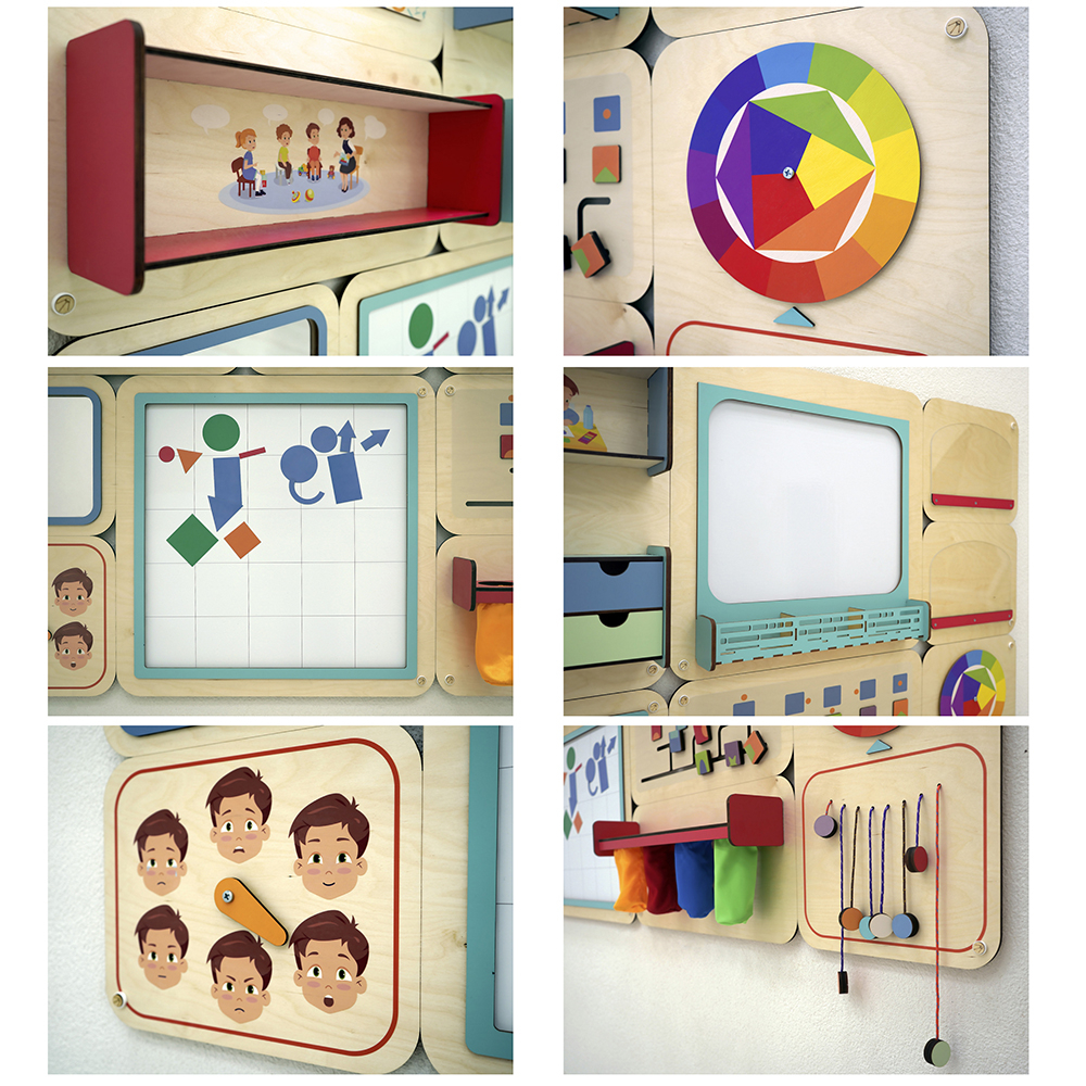 Настенная коррекционно-развивающая панель «Гармония» предназначена для кабинета детского психолога. Оформляет пространство стен и используется как эффективный коррекционно-профилактический рабочий инструмент. Подходит для детских садов различного типа, коррекционных образовательных центров и других детских учреждений.