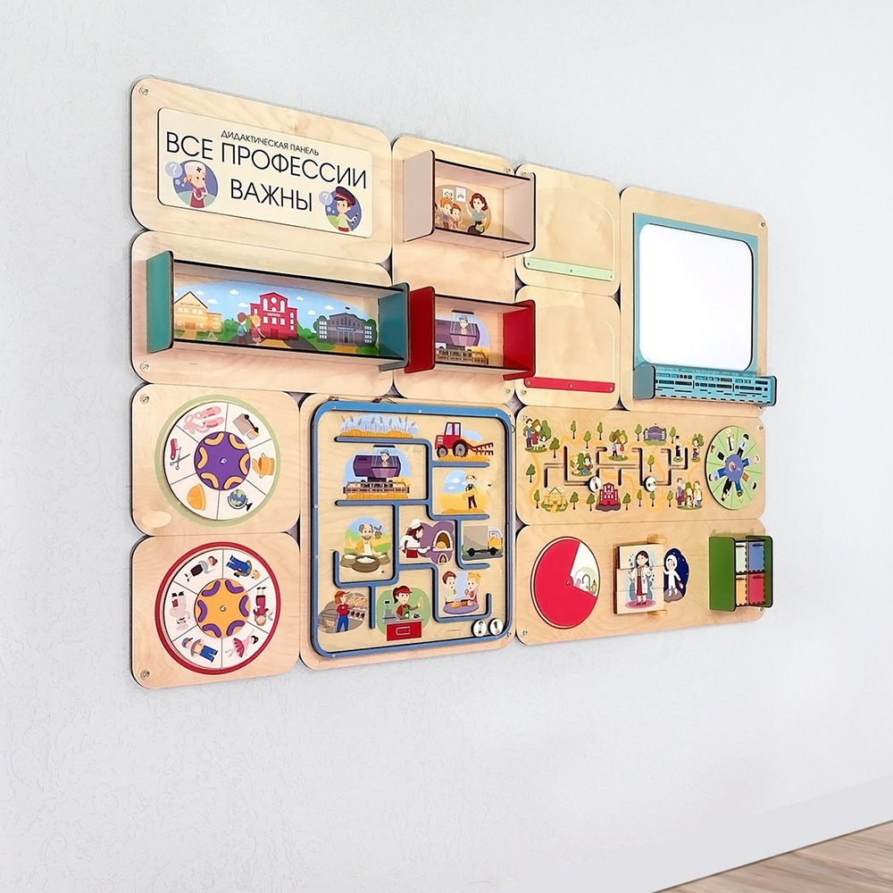 Дидактические панели отлично дополняют наборы цветных и иллюстрированных стеновых панелей, которые позволят оформить всё помещение в едином стиле.